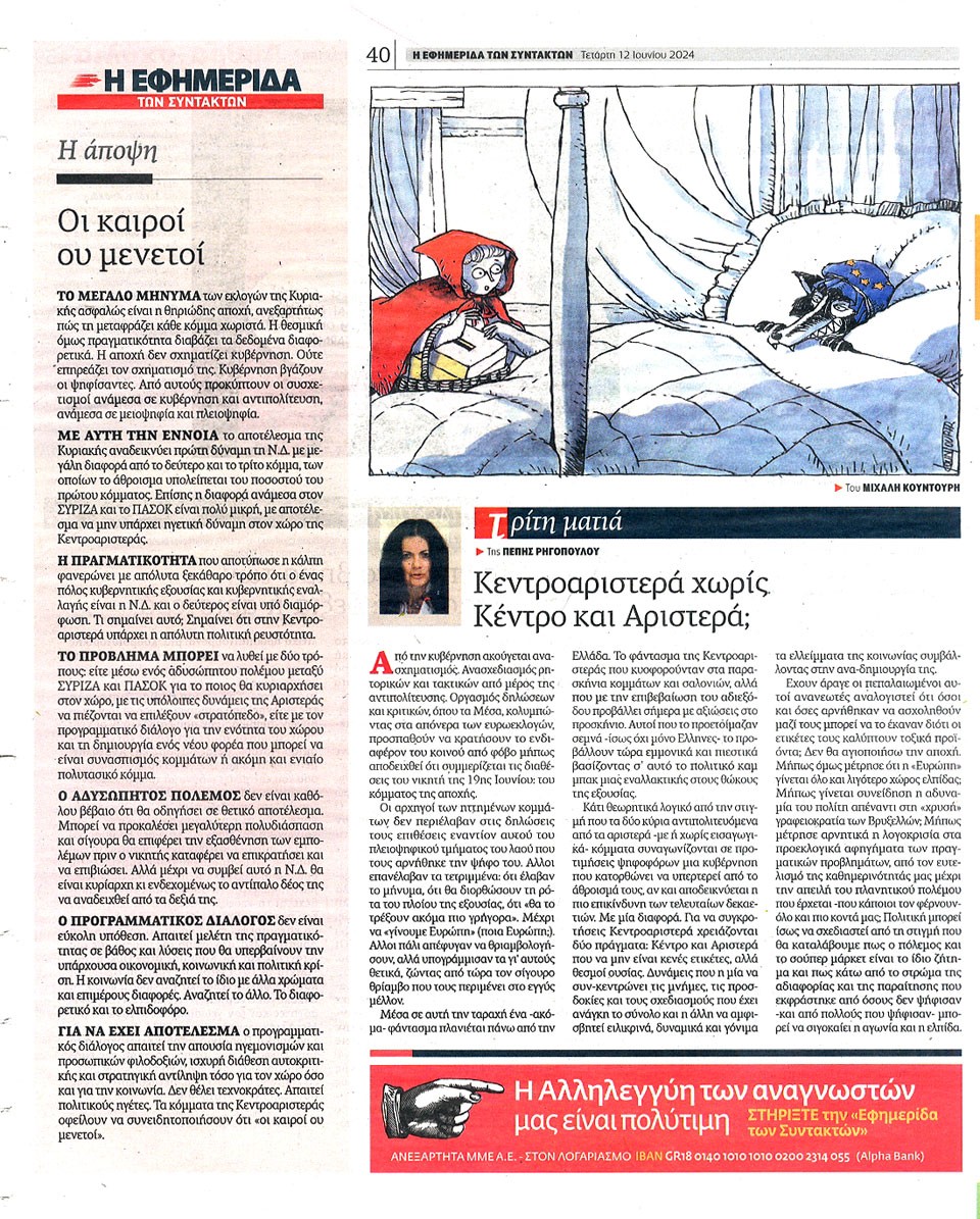 Η ΕΦΗΜΕΡΙΔΑ ΤΩΝ ΣΥΝΤΑΚΤΩΝ - 12 Ιουνίου 2024