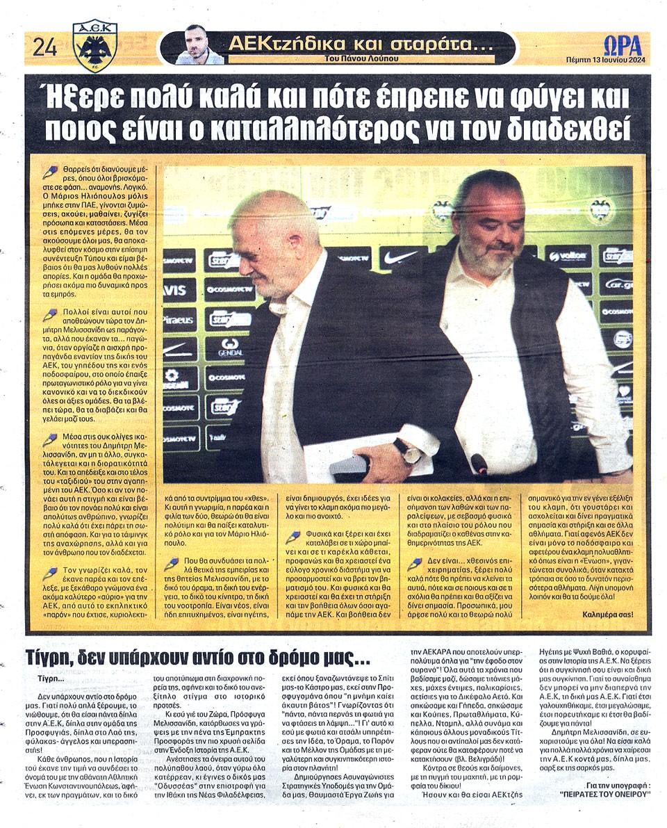ΑΘΛΗΤΙΚΗ ΩΡΑ ΤΩΝ ΣΠΟΡ - 13 Ιουνίου 2024