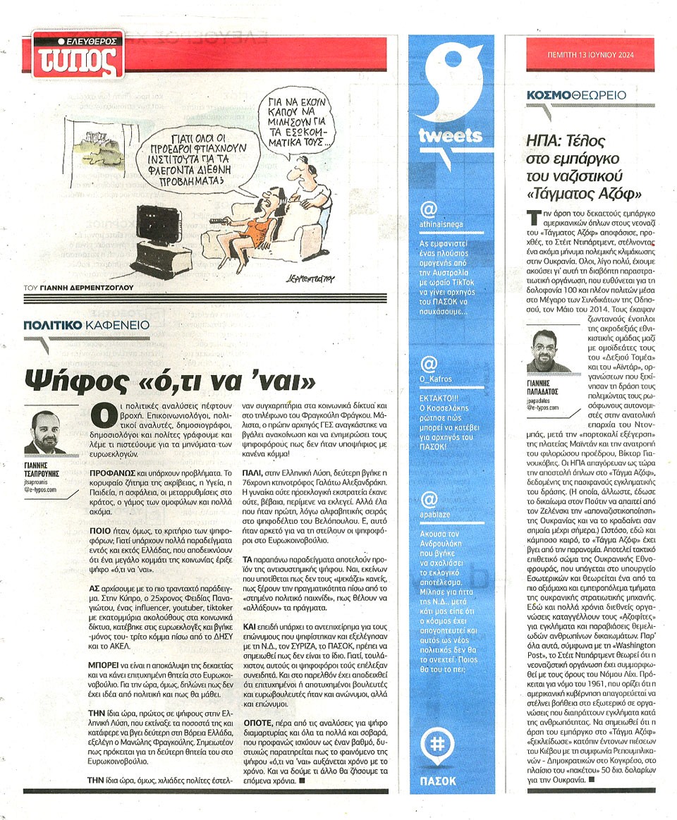 ΕΛΕΥΘΕΡΟΣ ΤΥΠΟΣ - 13 Ιουνίου 2024