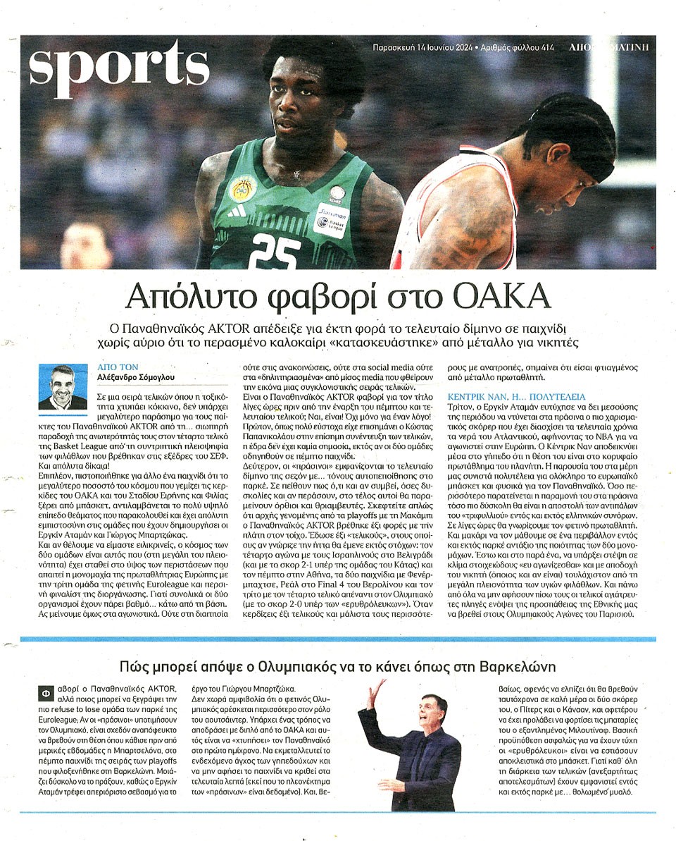 ΑΠΟΓΕΥΜΑΤΙΝΗ - 14 Ιουνίου 2024