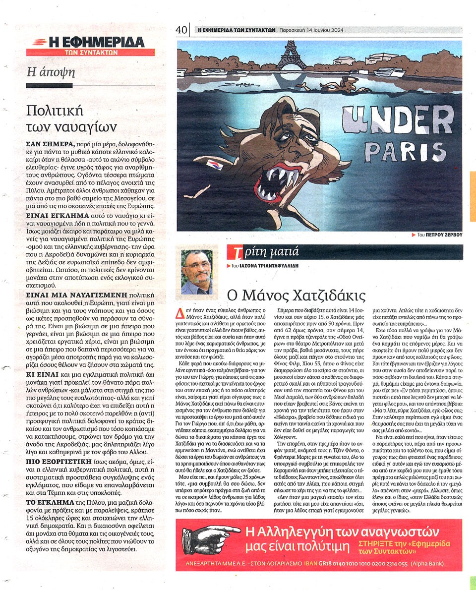Η ΕΦΗΜΕΡΙΔΑ ΤΩΝ ΣΥΝΤΑΚΤΩΝ - 14 Ιουνίου 2024