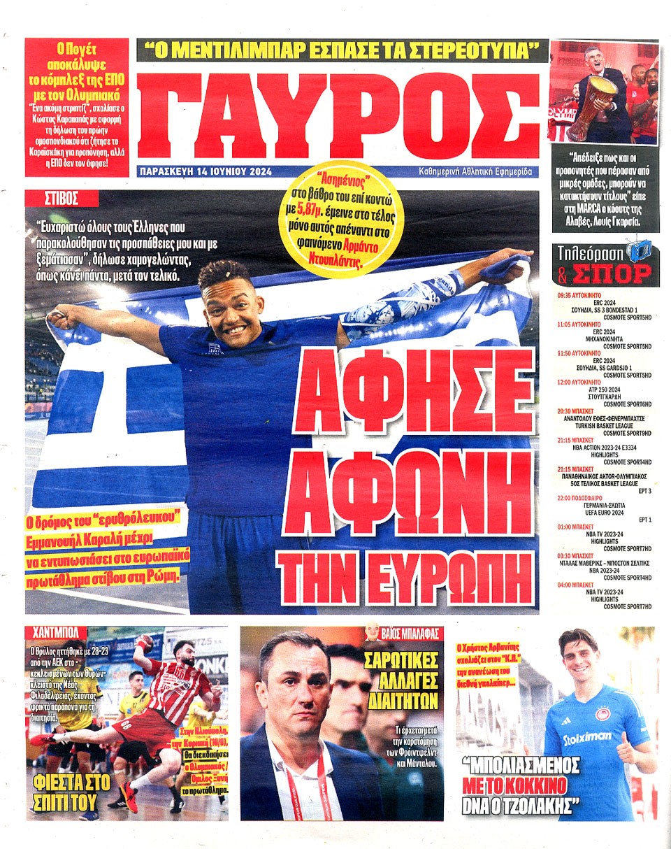 ΠΡΩΤΑΘΛΗΤΗΣ - 14 Ιουνίου 2024