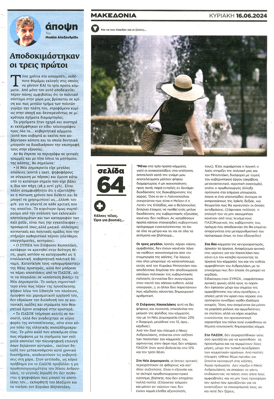 ΜΑΚΕΔΟΝΙΑ ΤΗΣ ΚΥΡΙΑΚΗΣ - 16 Ιουνίου 2024