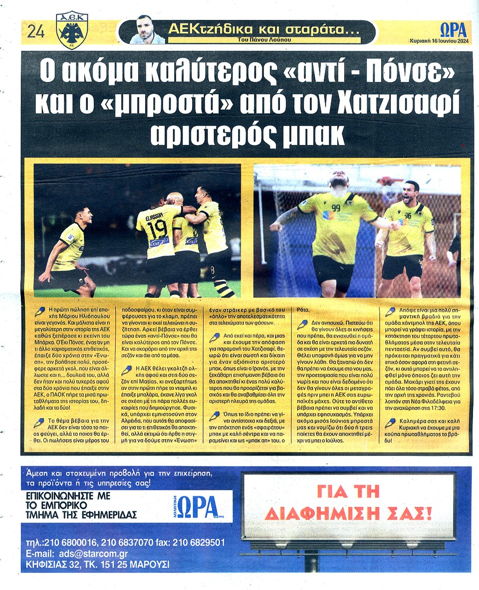 ΑΘΛΗΤΙΚΗ ΩΡΑ ΤΩΝ ΣΠΟΡ - 16 Ιουνίου 2024