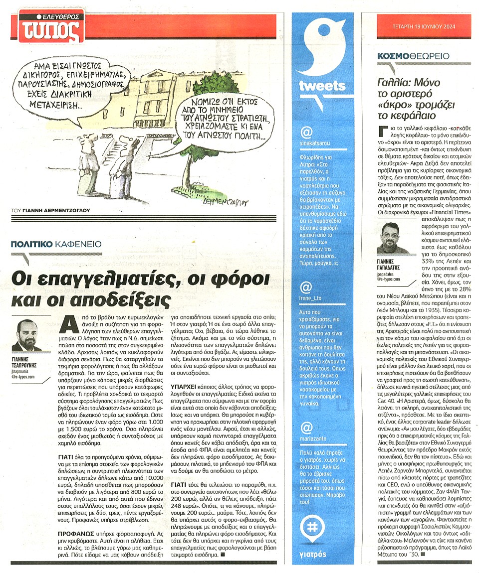 ΕΛΕΥΘΕΡΟΣ ΤΥΠΟΣ - 19 Ιουνίου 2024