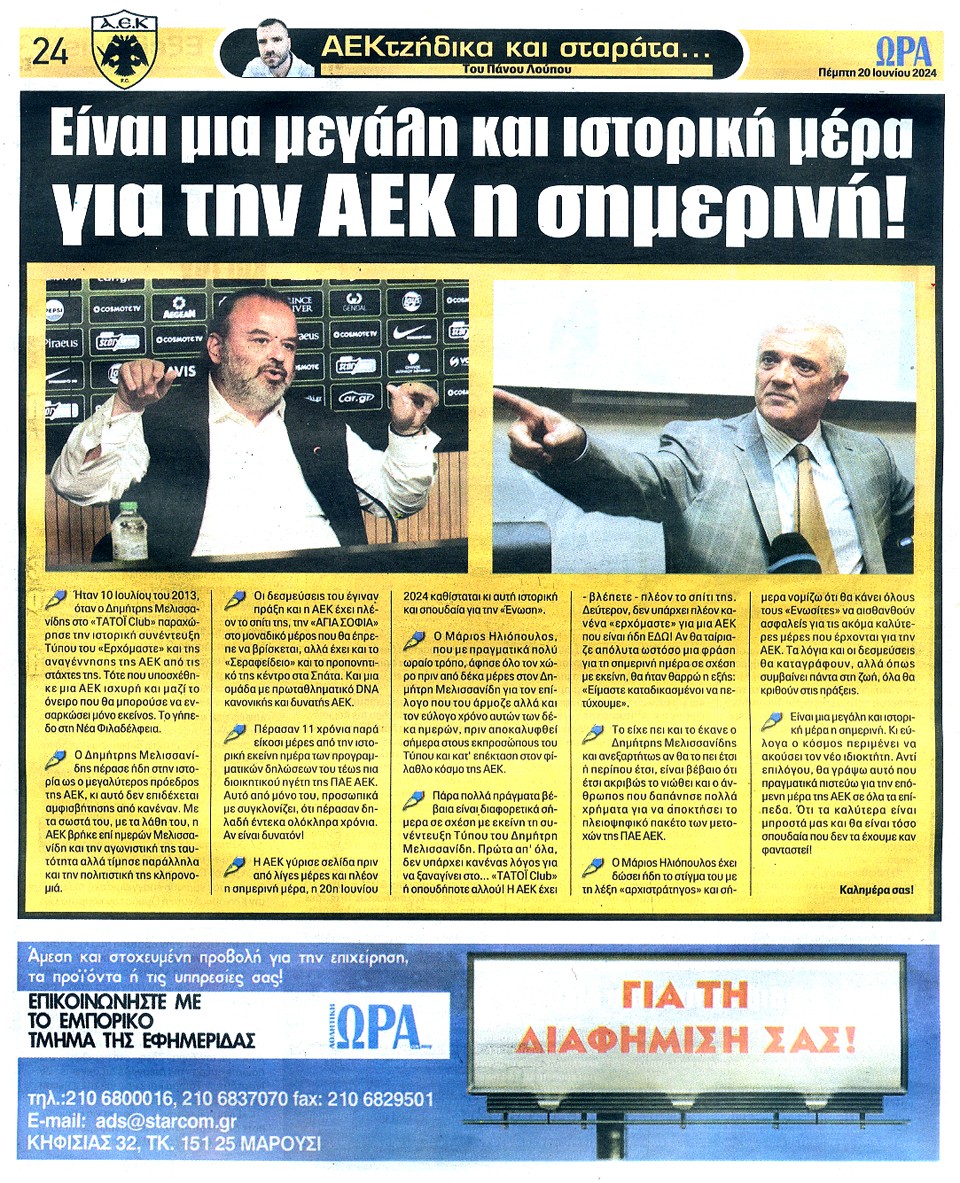 ΑΘΛΗΤΙΚΗ ΩΡΑ ΤΩΝ ΣΠΟΡ - 20 Ιουνίου 2024