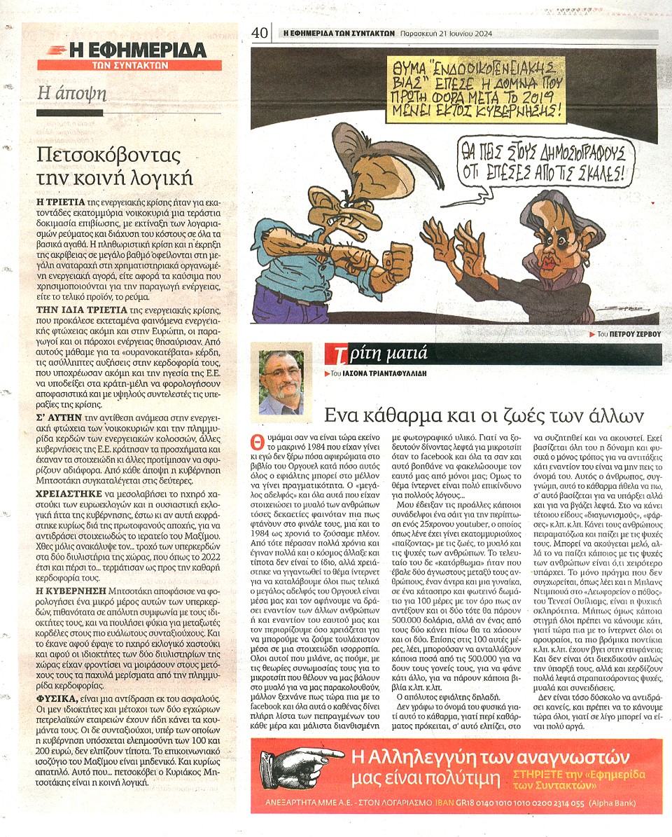 Η ΕΦΗΜΕΡΙΔΑ ΤΩΝ ΣΥΝΤΑΚΤΩΝ - 21 Ιουνίου 2024
