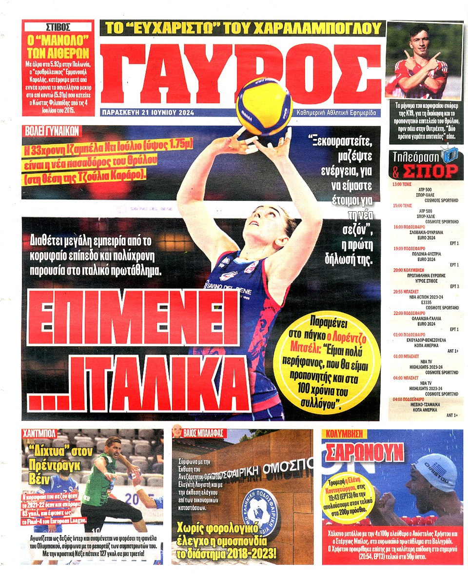 ΠΡΩΤΑΘΛΗΤΗΣ - 21 Ιουνίου 2024