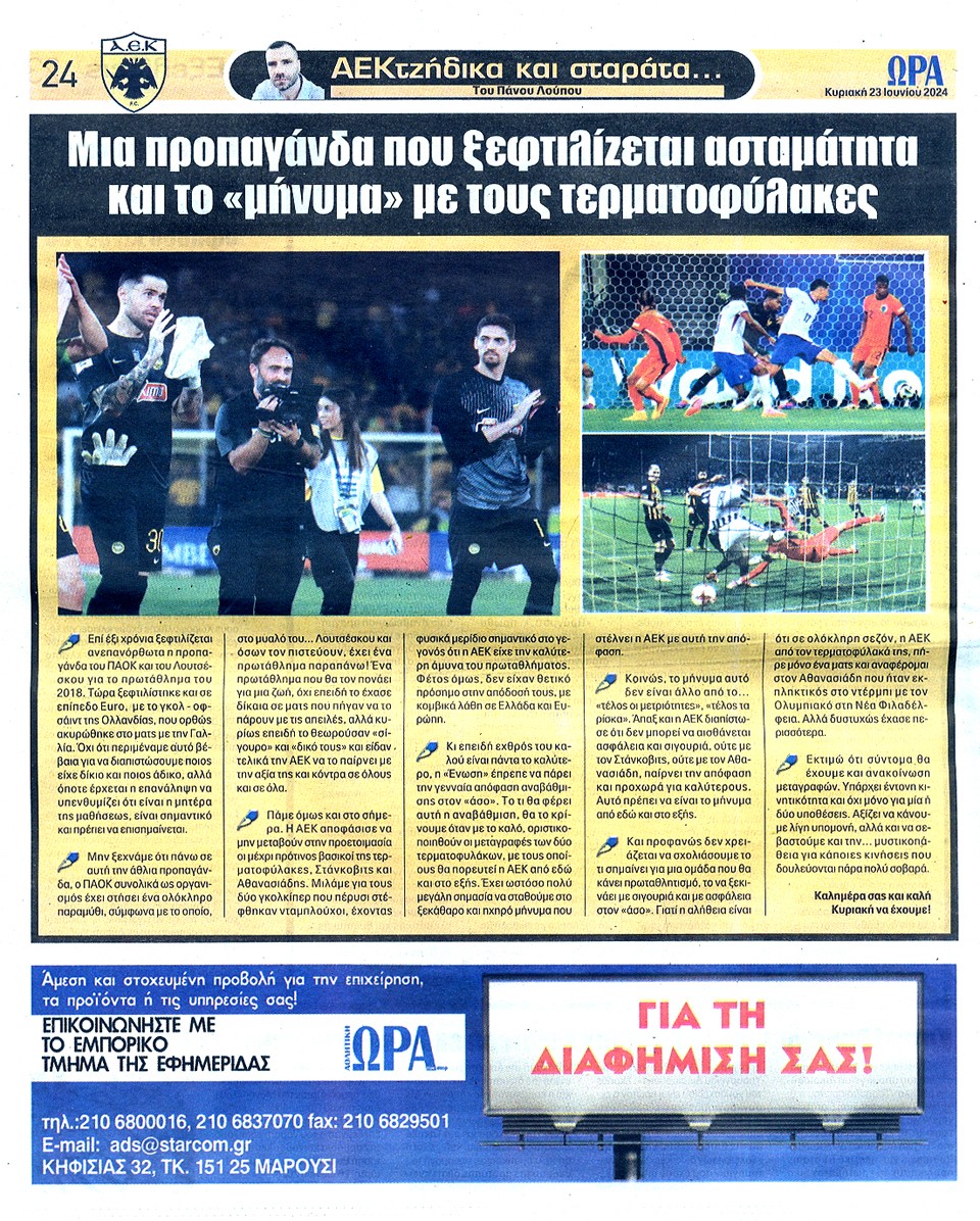 ΑΘΛΗΤΙΚΗ ΩΡΑ ΤΩΝ ΣΠΟΡ - 23 Ιουνίου 2024