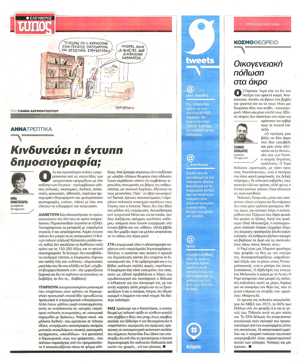 ΕΛΕΥΘΕΡΟΣ ΤΥΠΟΣ - 25 Ιουνίου 2024