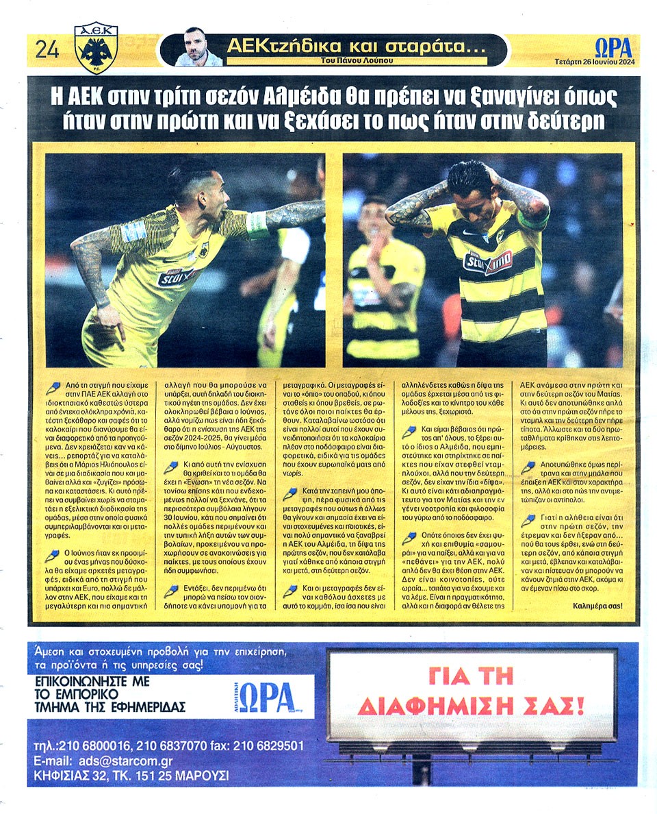 ΑΘΛΗΤΙΚΗ ΩΡΑ ΤΩΝ ΣΠΟΡ - 26 Ιουνίου 2024