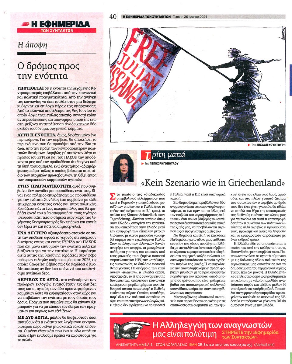 Η ΕΦΗΜΕΡΙΔΑ ΤΩΝ ΣΥΝΤΑΚΤΩΝ - 26 Ιουνίου 2024