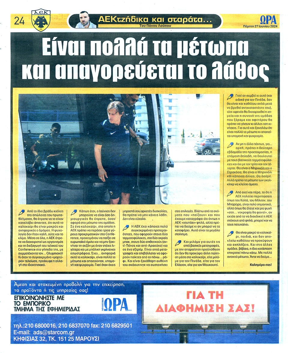 ΑΘΛΗΤΙΚΗ ΩΡΑ ΤΩΝ ΣΠΟΡ - 27 Ιουνίου 2024