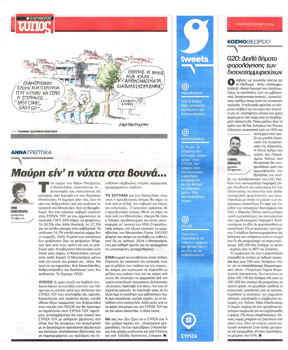 ΕΛΕΥΘΕΡΟΣ ΤΥΠΟΣ - 27 Ιουνίου 2024