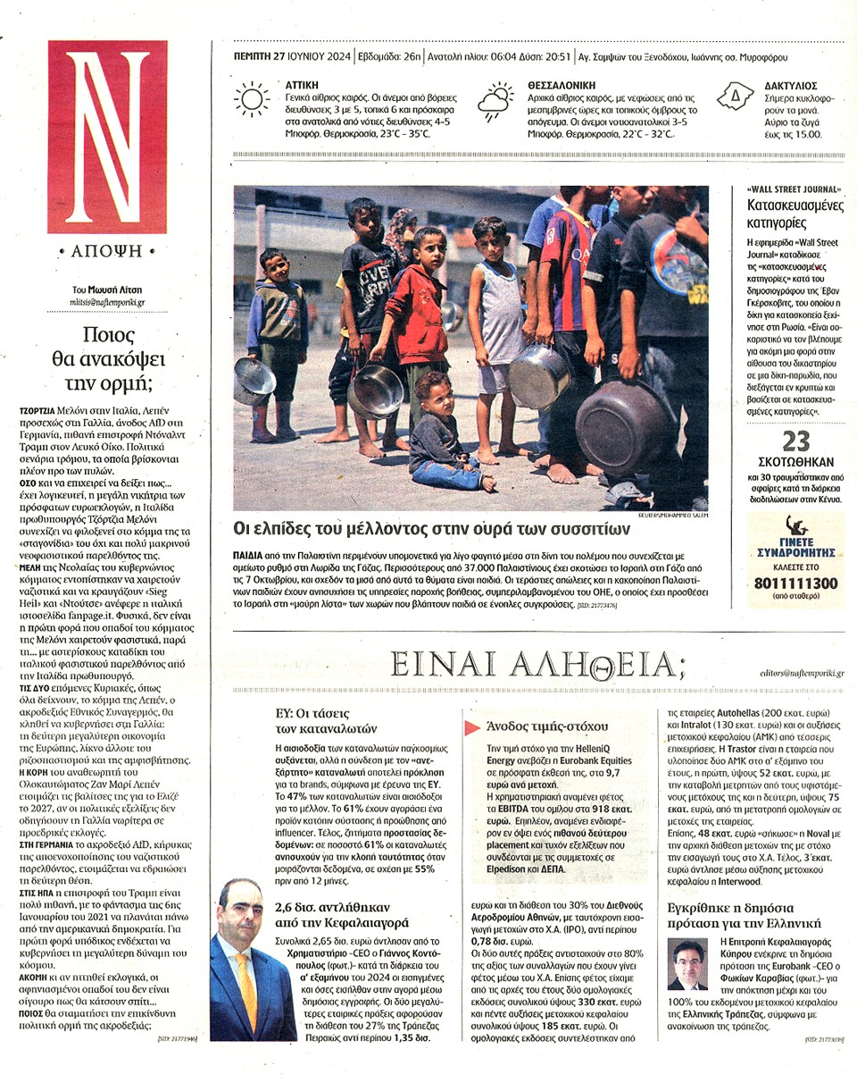 ΝΑΥΤΕΜΠΟΡΙΚΗ - 27 Ιουνίου 2024