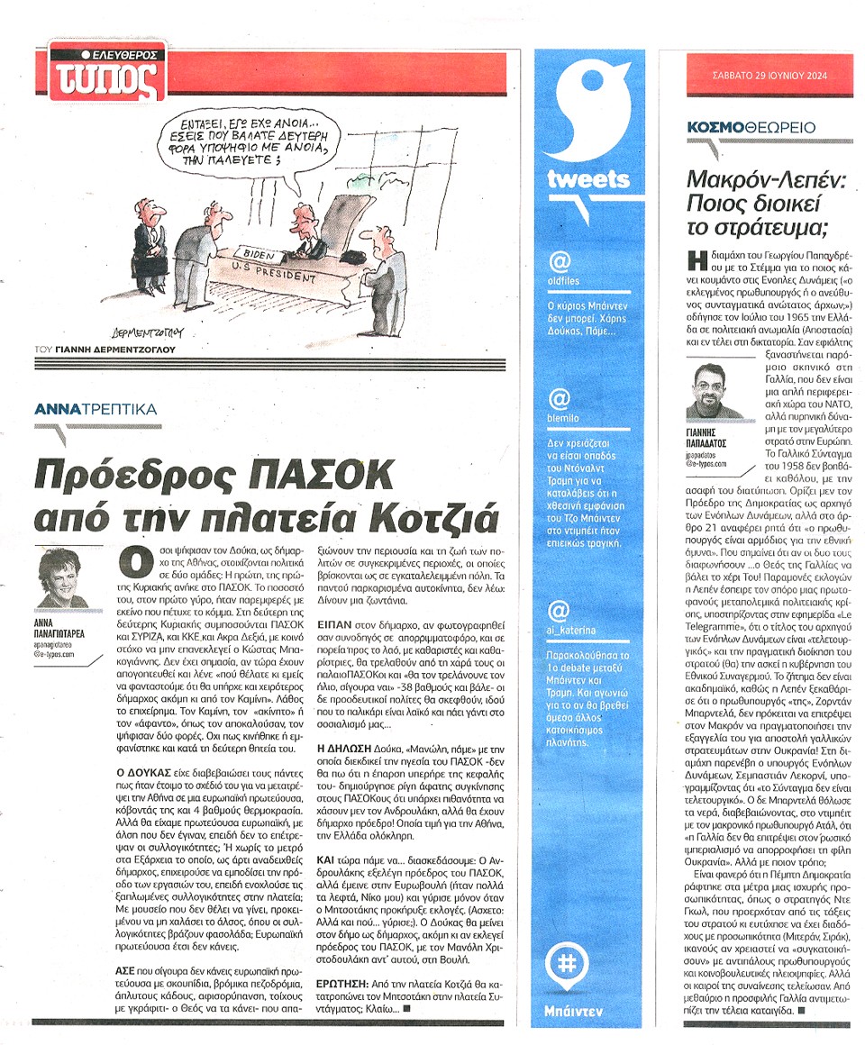 ΕΛΕΥΘΕΡΟΣ ΤΥΠΟΣ - 29 Ιουνίου 2024