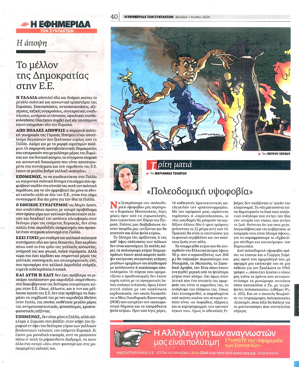 Η ΕΦΗΜΕΡΙΔΑ ΤΩΝ ΣΥΝΤΑΚΤΩΝ - 01 Ιουλίου 2024