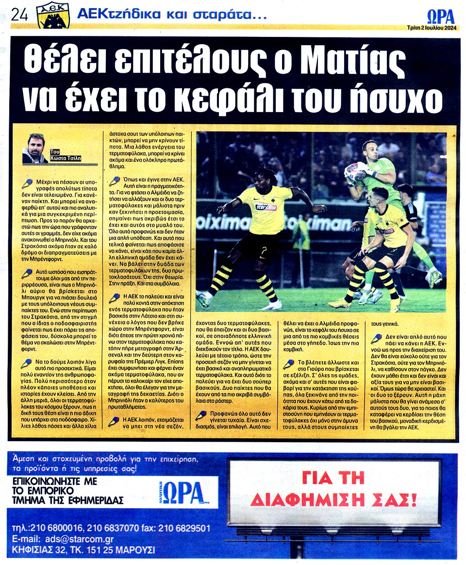 ΑΘΛΗΤΙΚΗ ΩΡΑ ΤΩΝ ΣΠΟΡ - 02 Ιουλίου 2024
