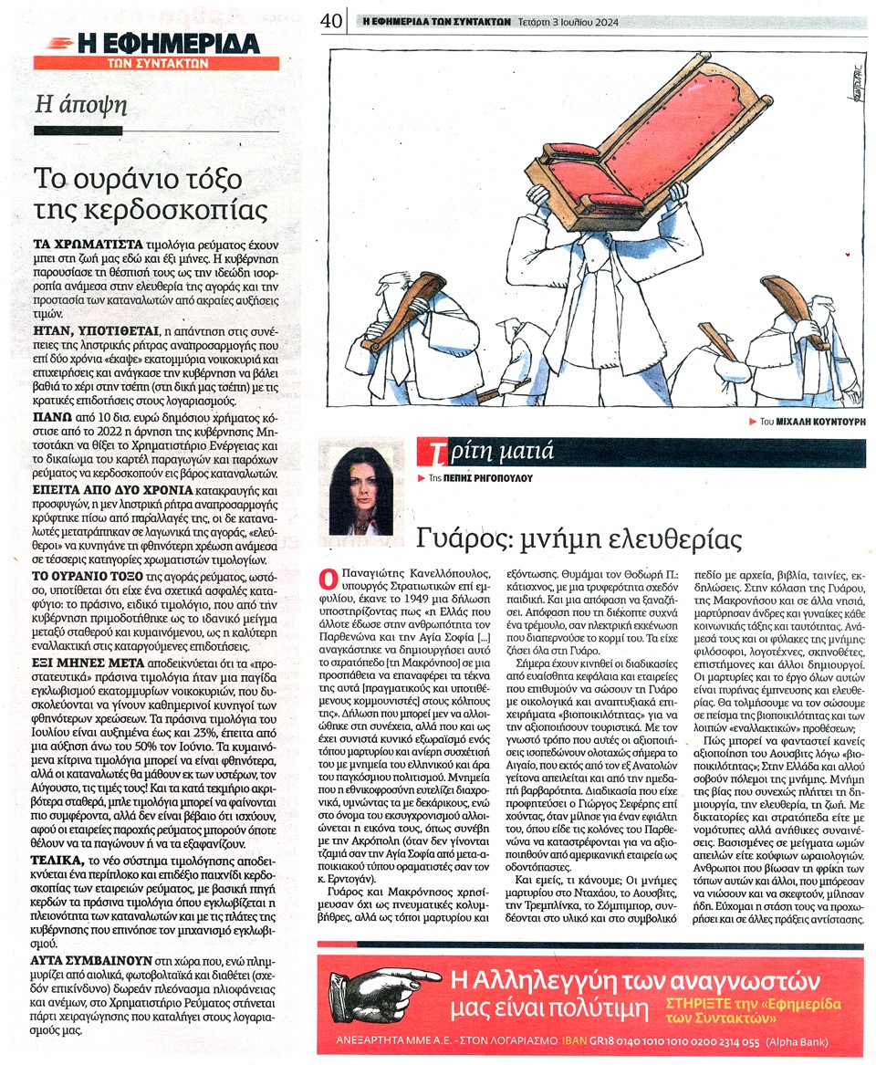 Η ΕΦΗΜΕΡΙΔΑ ΤΩΝ ΣΥΝΤΑΚΤΩΝ - 03 Ιουλίου 2024