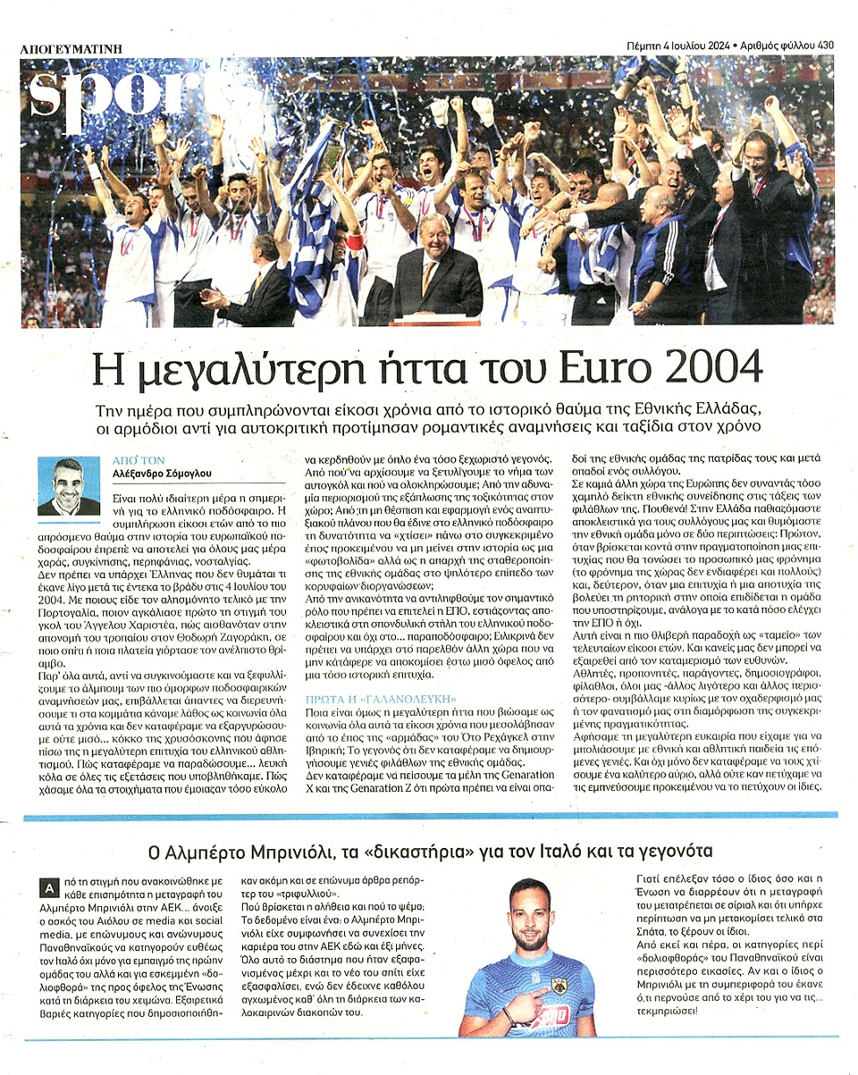 ΑΠΟΓΕΥΜΑΤΙΝΗ - 04 Ιουλίου 2024