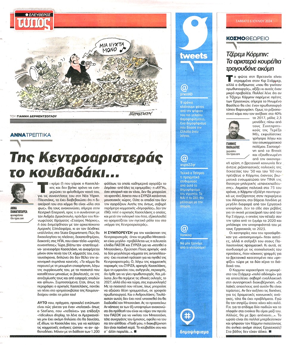 ΕΛΕΥΘΕΡΟΣ ΤΥΠΟΣ - 06 Ιουλίου 2024