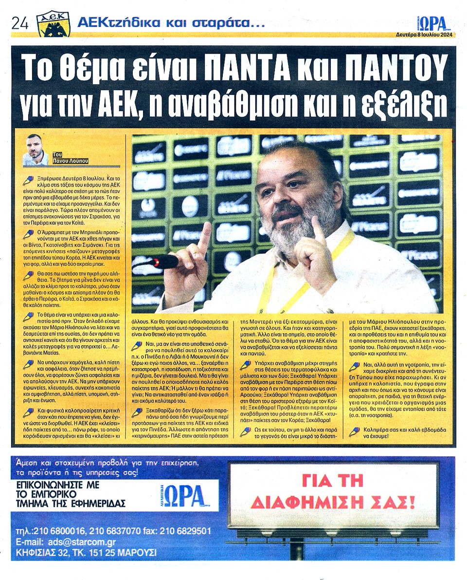 ΑΘΛΗΤΙΚΗ ΩΡΑ ΤΩΝ ΣΠΟΡ - 08 Ιουλίου 2024