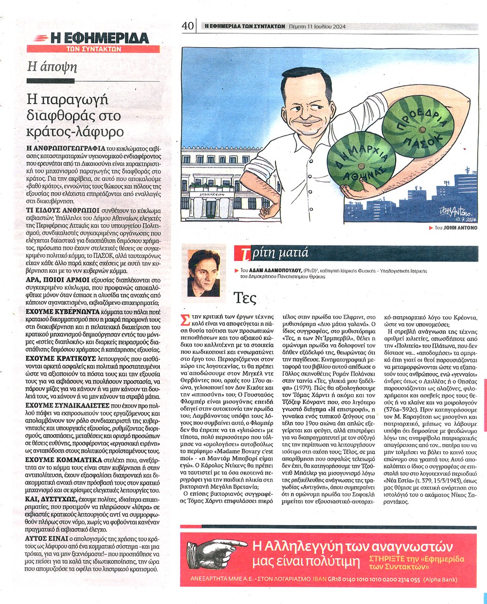 Η ΕΦΗΜΕΡΙΔΑ ΤΩΝ ΣΥΝΤΑΚΤΩΝ - 11 Ιουλίου 2024