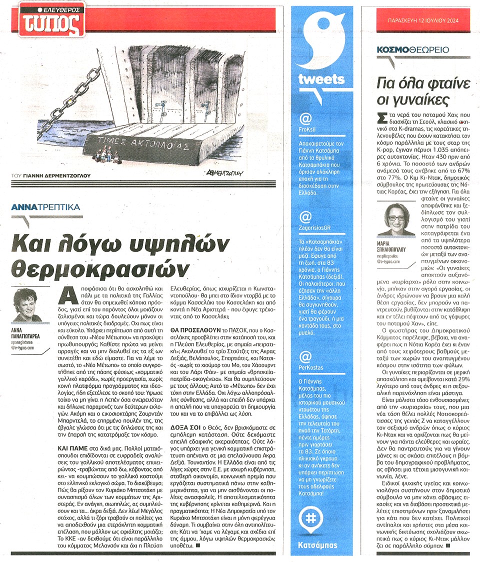 ΕΛΕΥΘΕΡΟΣ ΤΥΠΟΣ - 12 Ιουλίου 2024