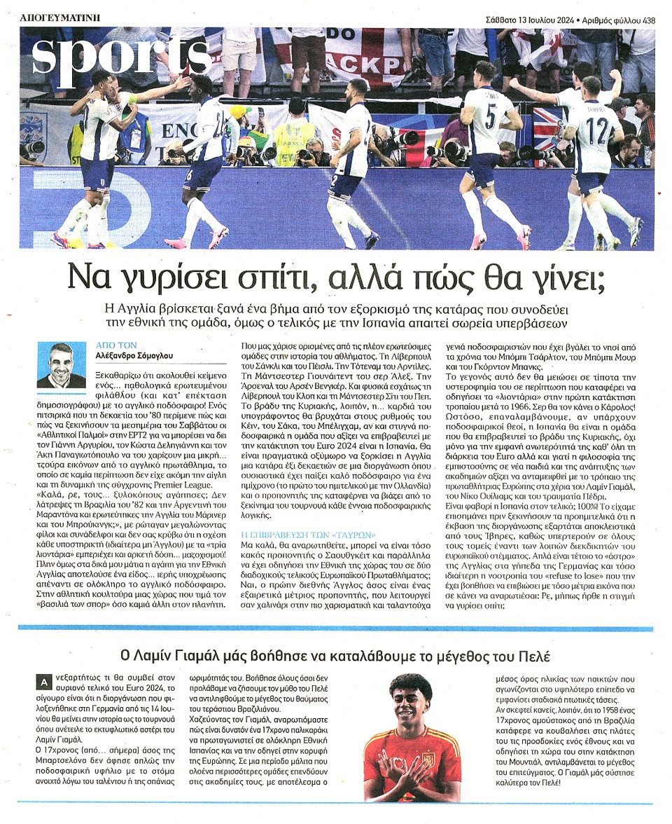 ΑΠΟΓΕΥΜΑΤΙΝΗ - 13 Ιουλίου 2024