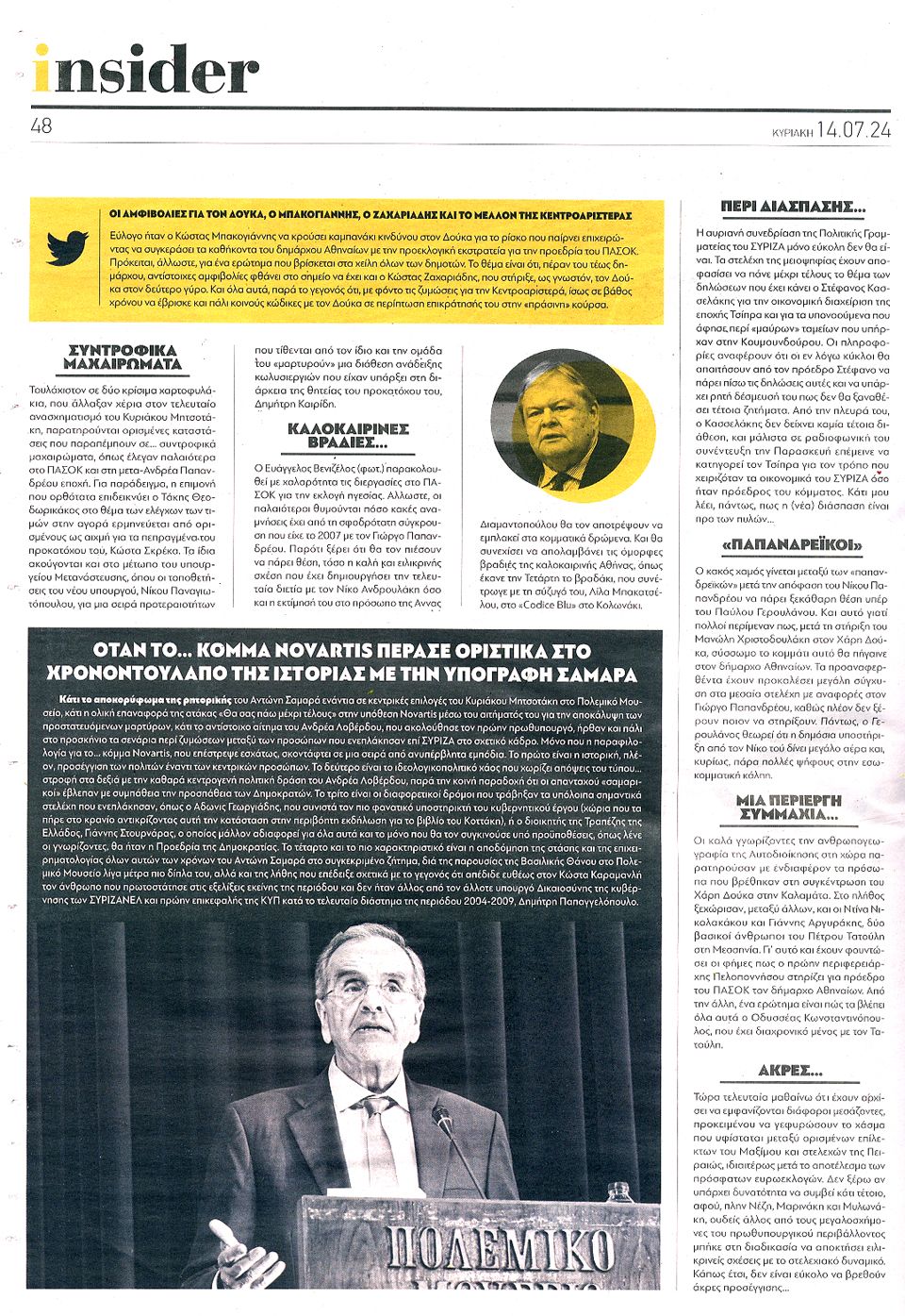 ΑΠΟΓΕΥΜΑΤΙΝΗ ΤΗΣ ΚΥΡΙΑΚΗΣ - 14 Ιουλίου 2024