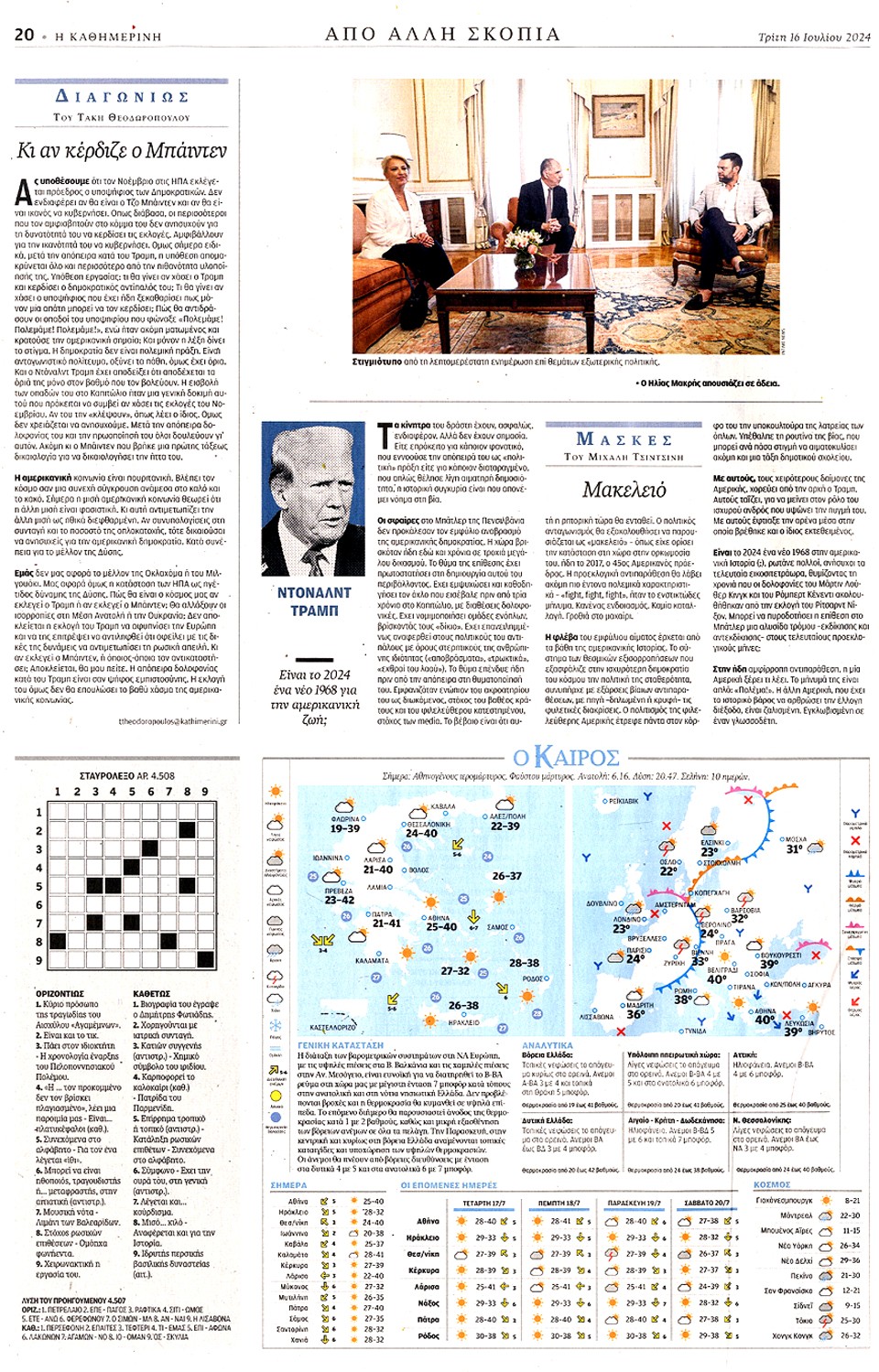 ΚΑΘΗΜΕΡΙΝΗ - 16 Ιουλίου 2024