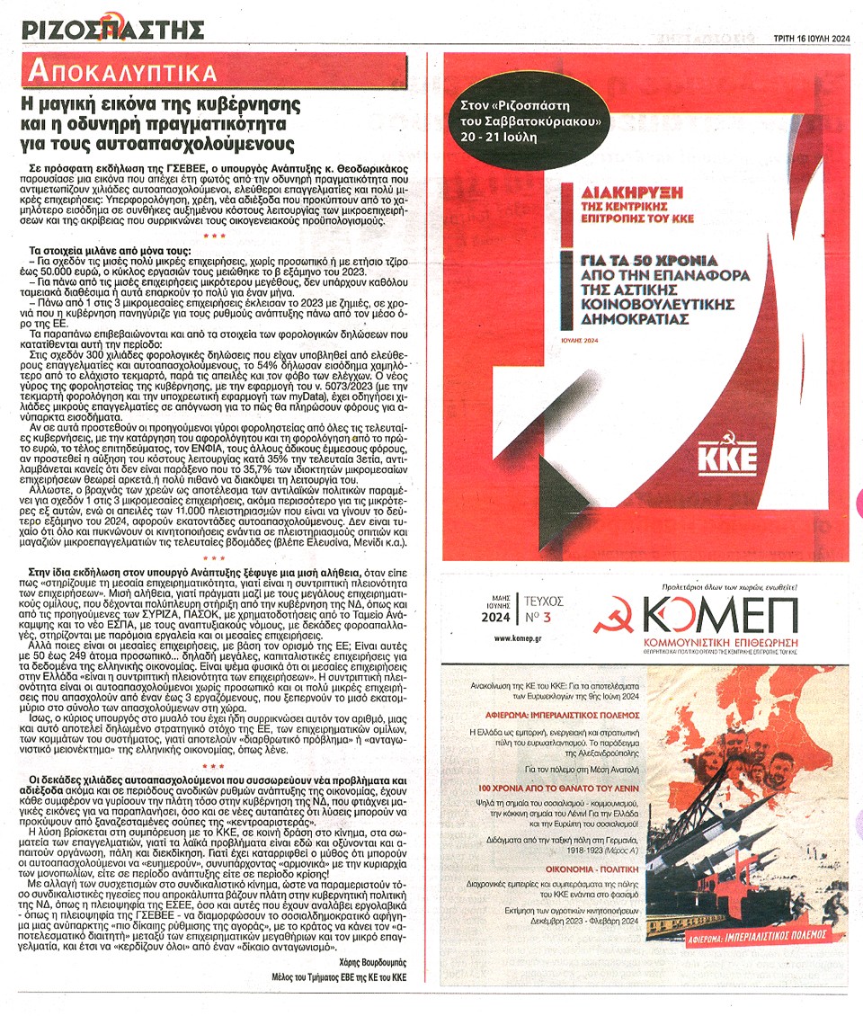 ΡΙΖΟΣΠΑΣΤΗΣ - 16 Ιουλίου 2024