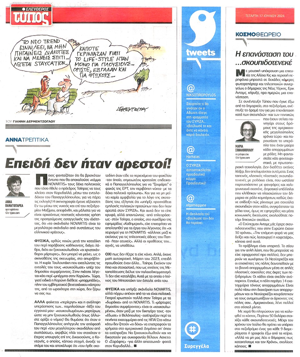 ΕΛΕΥΘΕΡΟΣ ΤΥΠΟΣ - 17 Ιουλίου 2024
