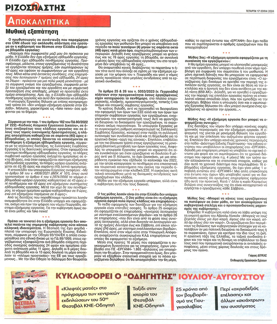 ΡΙΖΟΣΠΑΣΤΗΣ - 17 Ιουλίου 2024