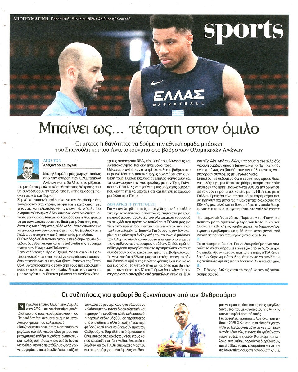 ΑΠΟΓΕΥΜΑΤΙΝΗ - 19 Ιουλίου 2024