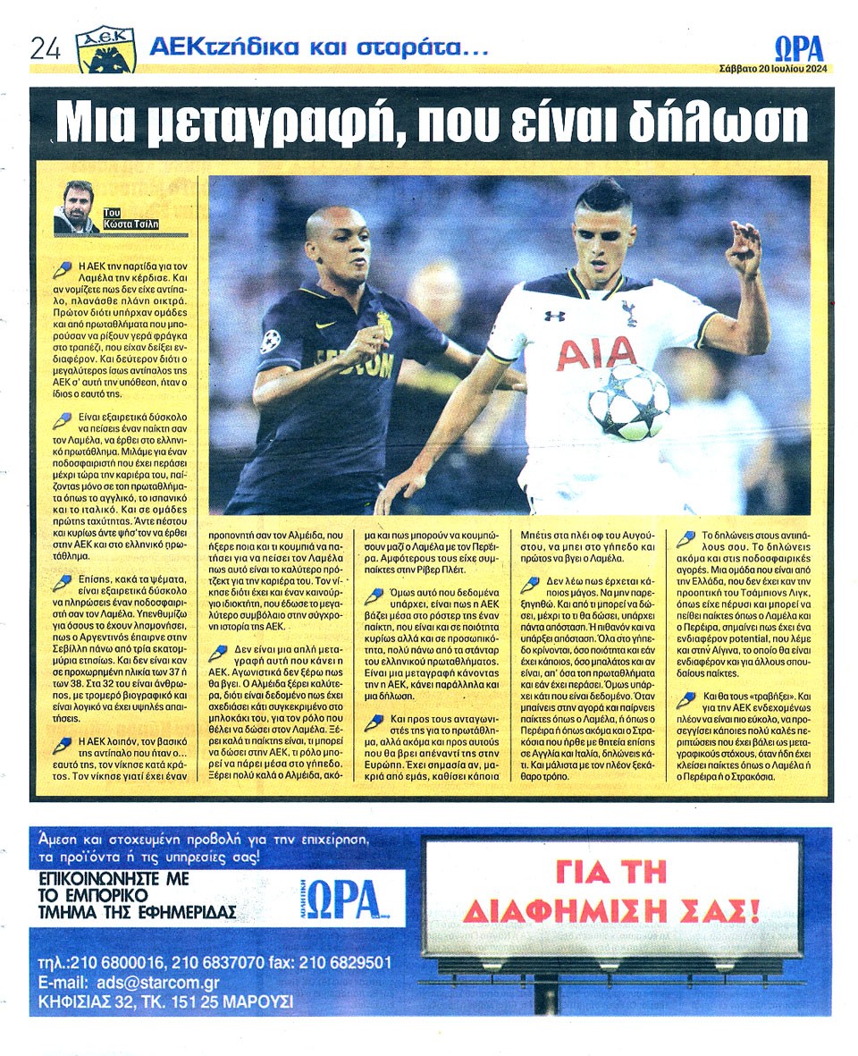 ΑΘΛΗΤΙΚΗ ΩΡΑ ΤΩΝ ΣΠΟΡ - 20 Ιουλίου 2024