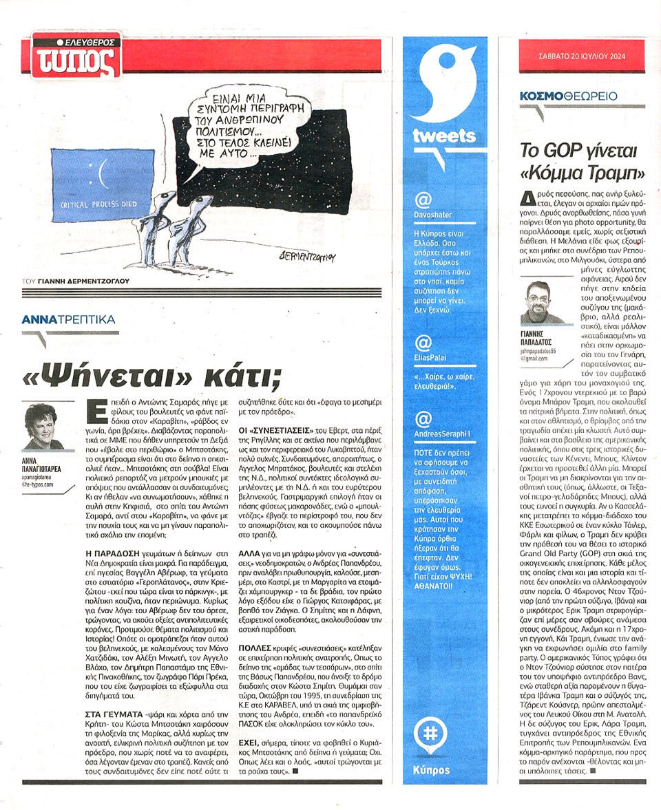 ΕΛΕΥΘΕΡΟΣ ΤΥΠΟΣ - 20 Ιουλίου 2024