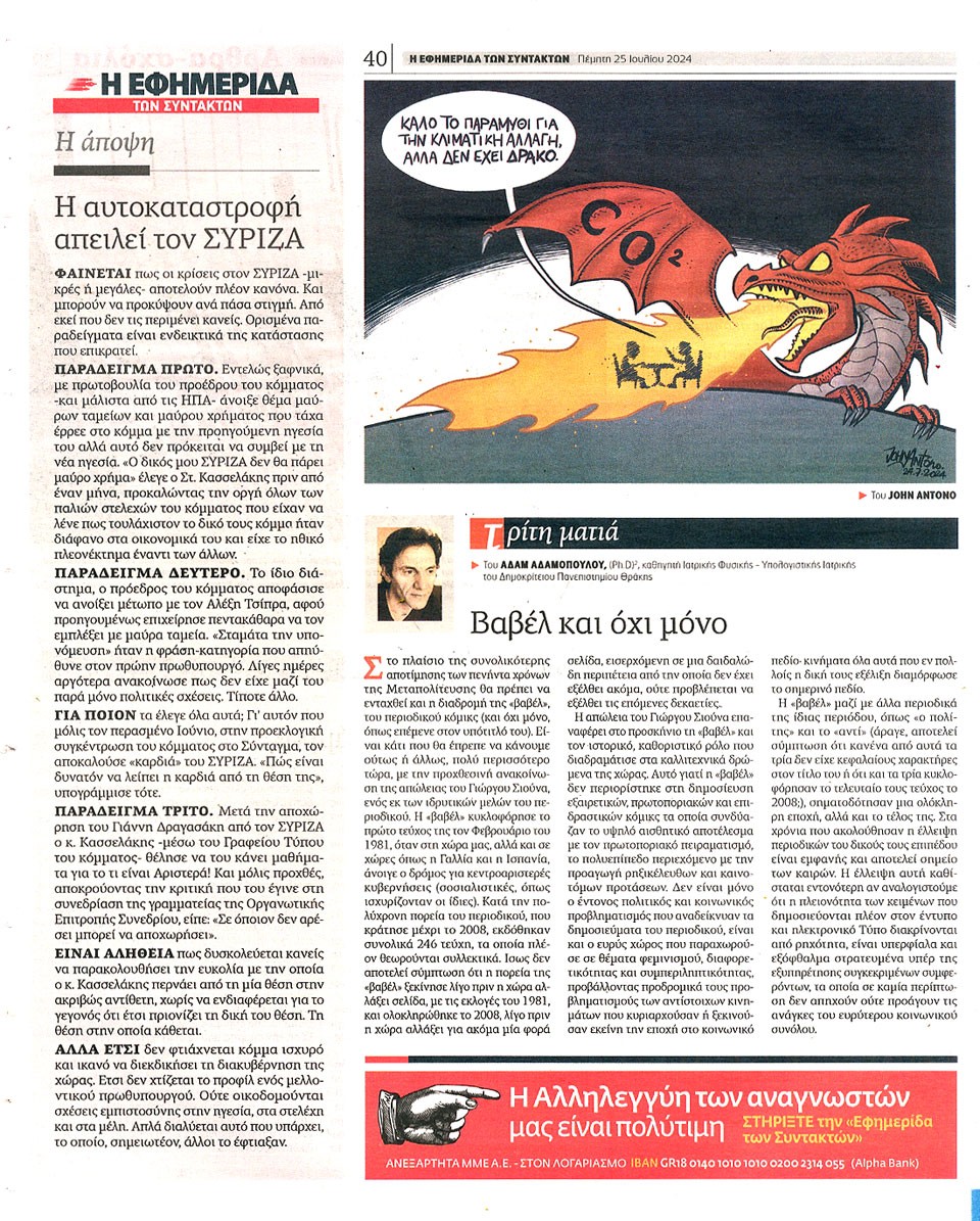 Η ΕΦΗΜΕΡΙΔΑ ΤΩΝ ΣΥΝΤΑΚΤΩΝ - 25 Ιουλίου 2024