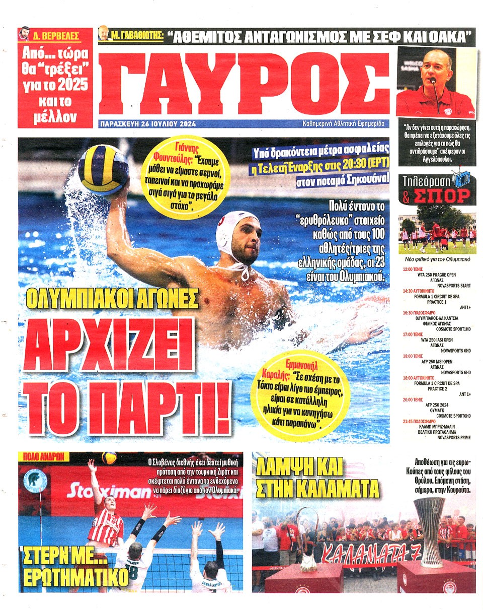 ΠΡΩΤΑΘΛΗΤΗΣ - 26 Ιουλίου 2024