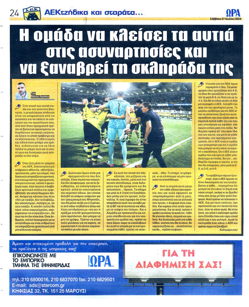 ΑΘΛΗΤΙΚΗ ΩΡΑ ΤΩΝ ΣΠΟΡ - 27 Ιουλίου 2024