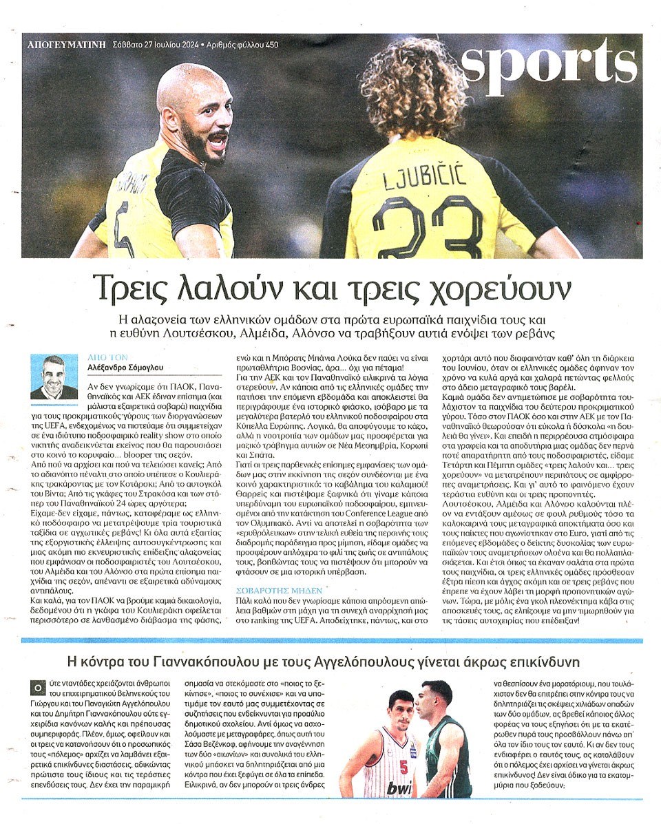 ΑΠΟΓΕΥΜΑΤΙΝΗ - 27 Ιουλίου 2024