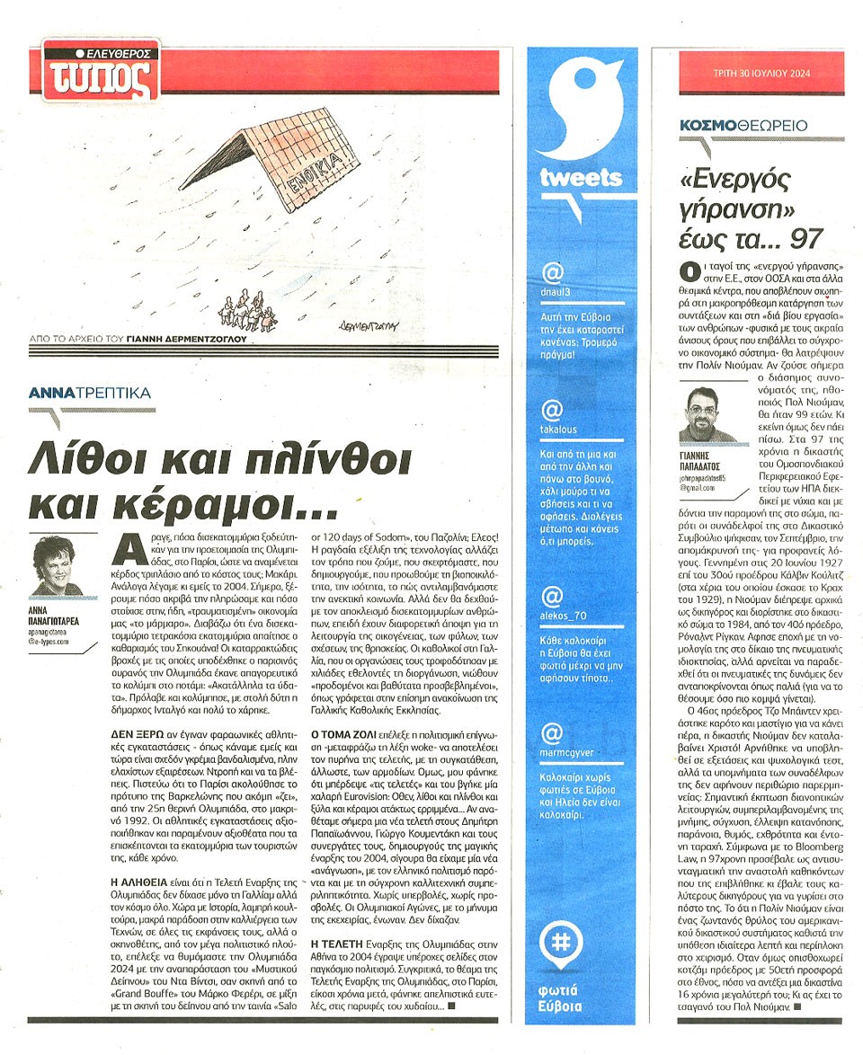 ΕΛΕΥΘΕΡΟΣ ΤΥΠΟΣ - 30 Ιουλίου 2024