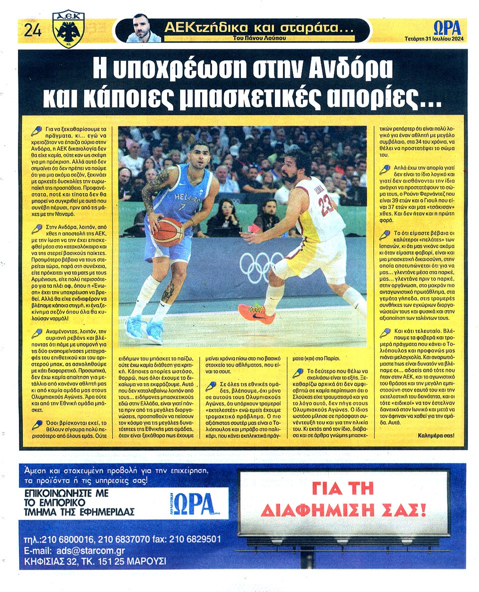 ΑΘΛΗΤΙΚΗ ΩΡΑ ΤΩΝ ΣΠΟΡ - 31 Ιουλίου 2024