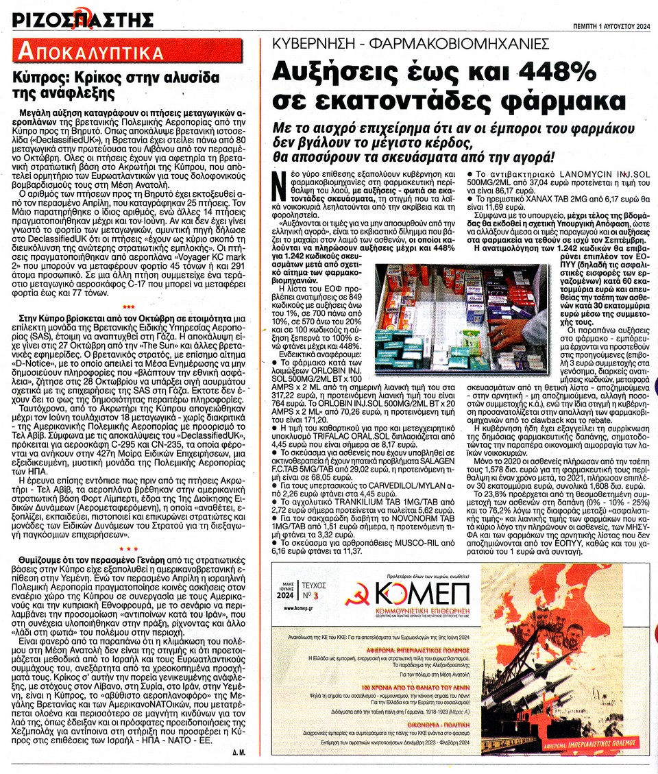 ΡΙΖΟΣΠΑΣΤΗΣ - 01 Αυγούστου 2024