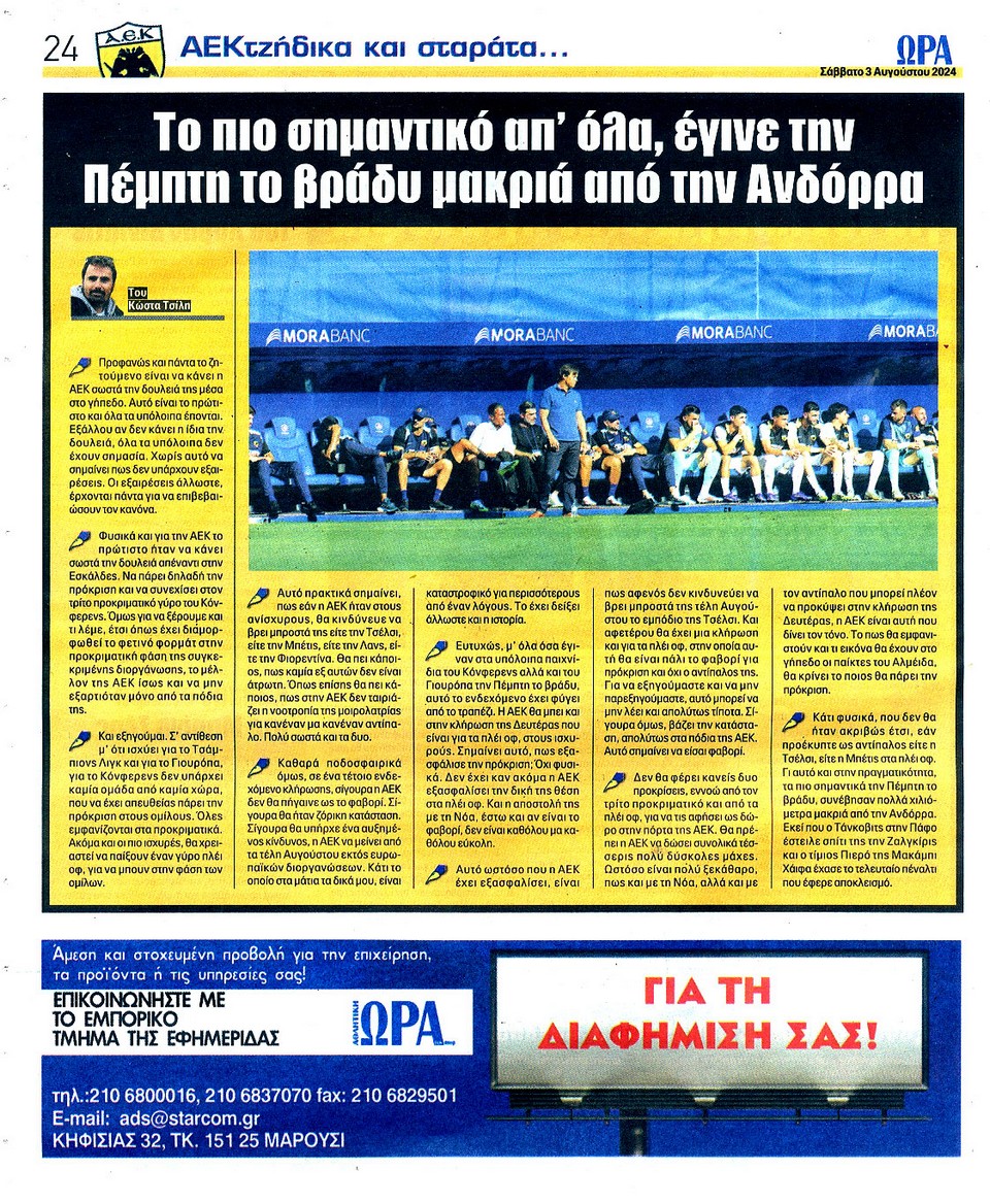 ΑΘΛΗΤΙΚΗ ΩΡΑ ΤΩΝ ΣΠΟΡ - 03 Αυγούστου 2024