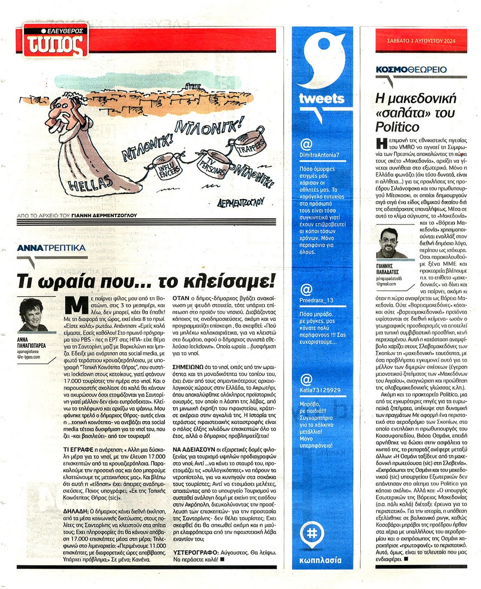 ΕΛΕΥΘΕΡΟΣ ΤΥΠΟΣ - 03 Αυγούστου 2024