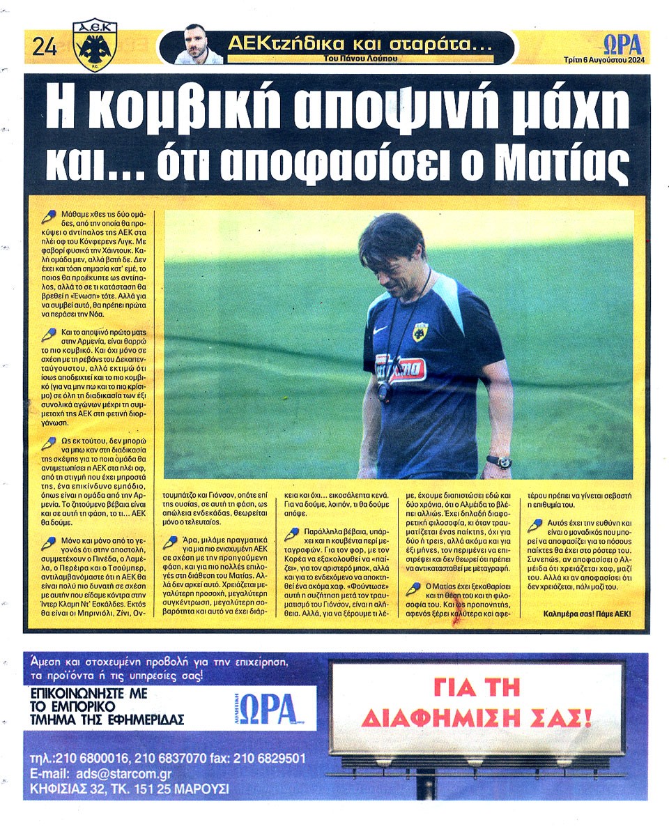 ΑΘΛΗΤΙΚΗ ΩΡΑ ΤΩΝ ΣΠΟΡ - 06 Αυγούστου 2024