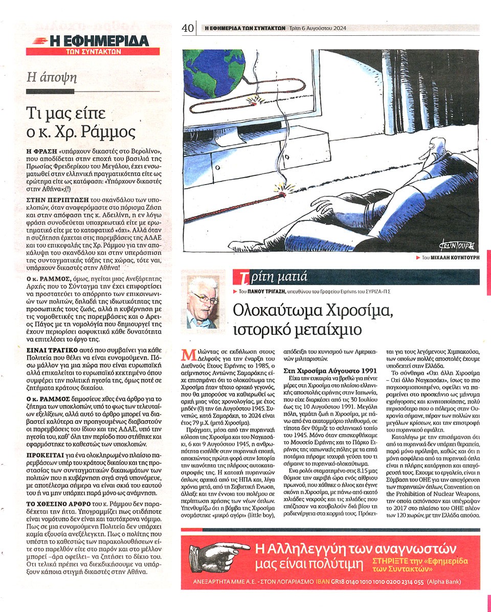 Η ΕΦΗΜΕΡΙΔΑ ΤΩΝ ΣΥΝΤΑΚΤΩΝ - 06 Αυγούστου 2024
