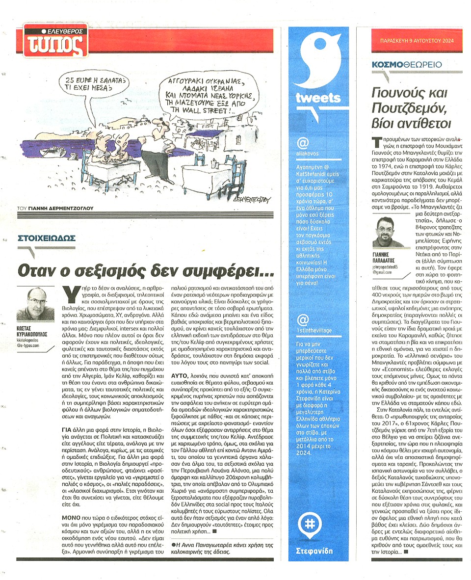 ΕΛΕΥΘΕΡΟΣ ΤΥΠΟΣ - 09 Αυγούστου 2024