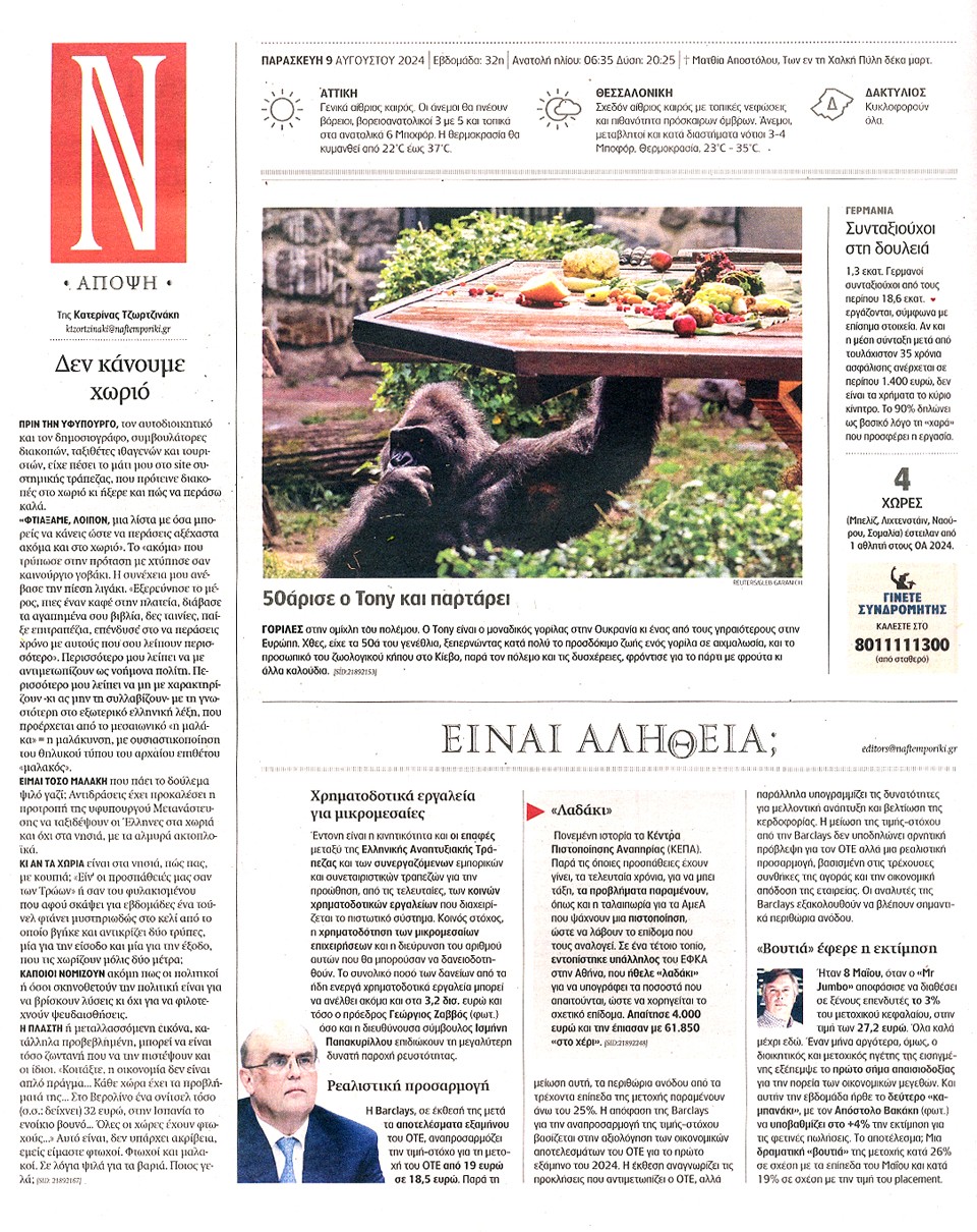ΝΑΥΤΕΜΠΟΡΙΚΗ - 09 Αυγούστου 2024